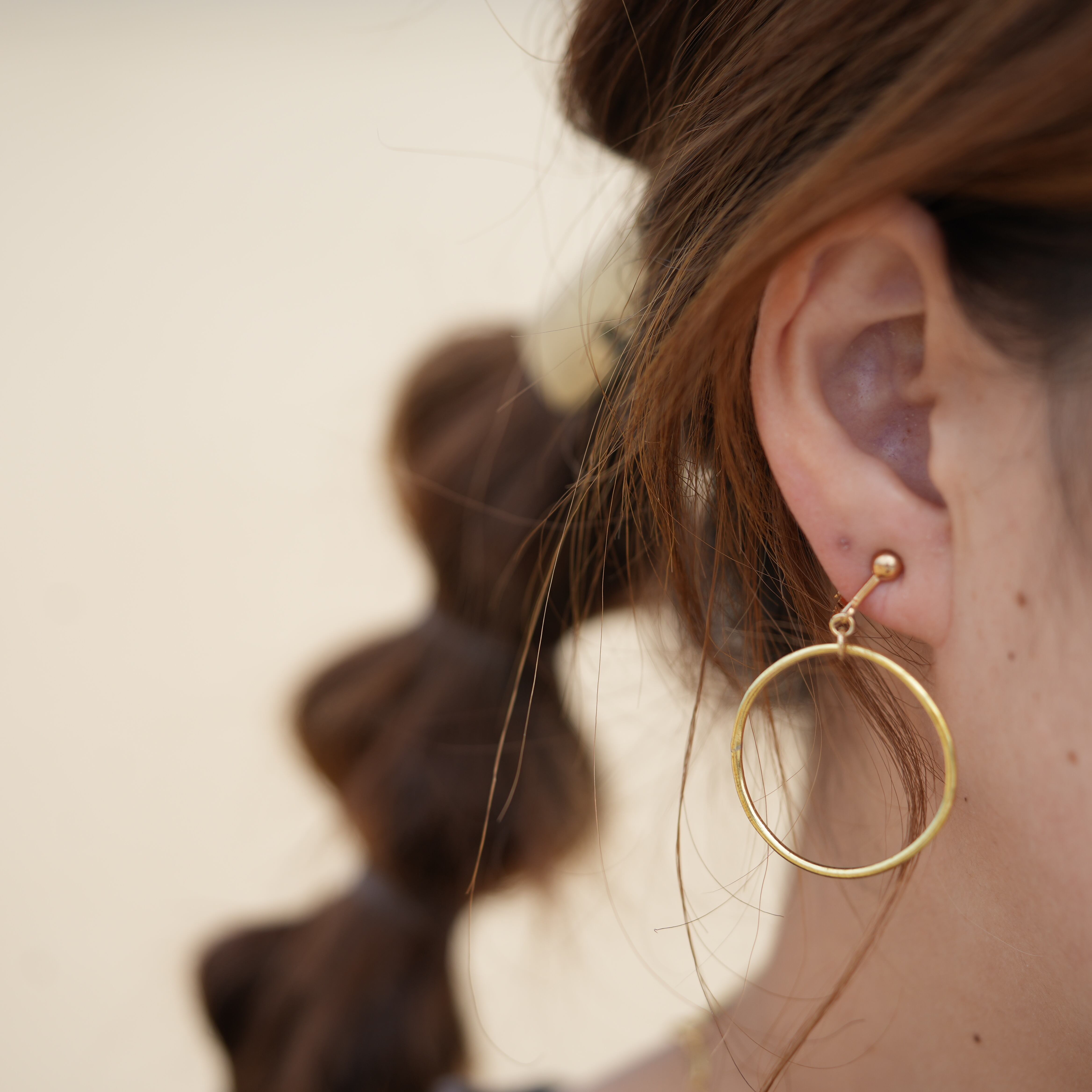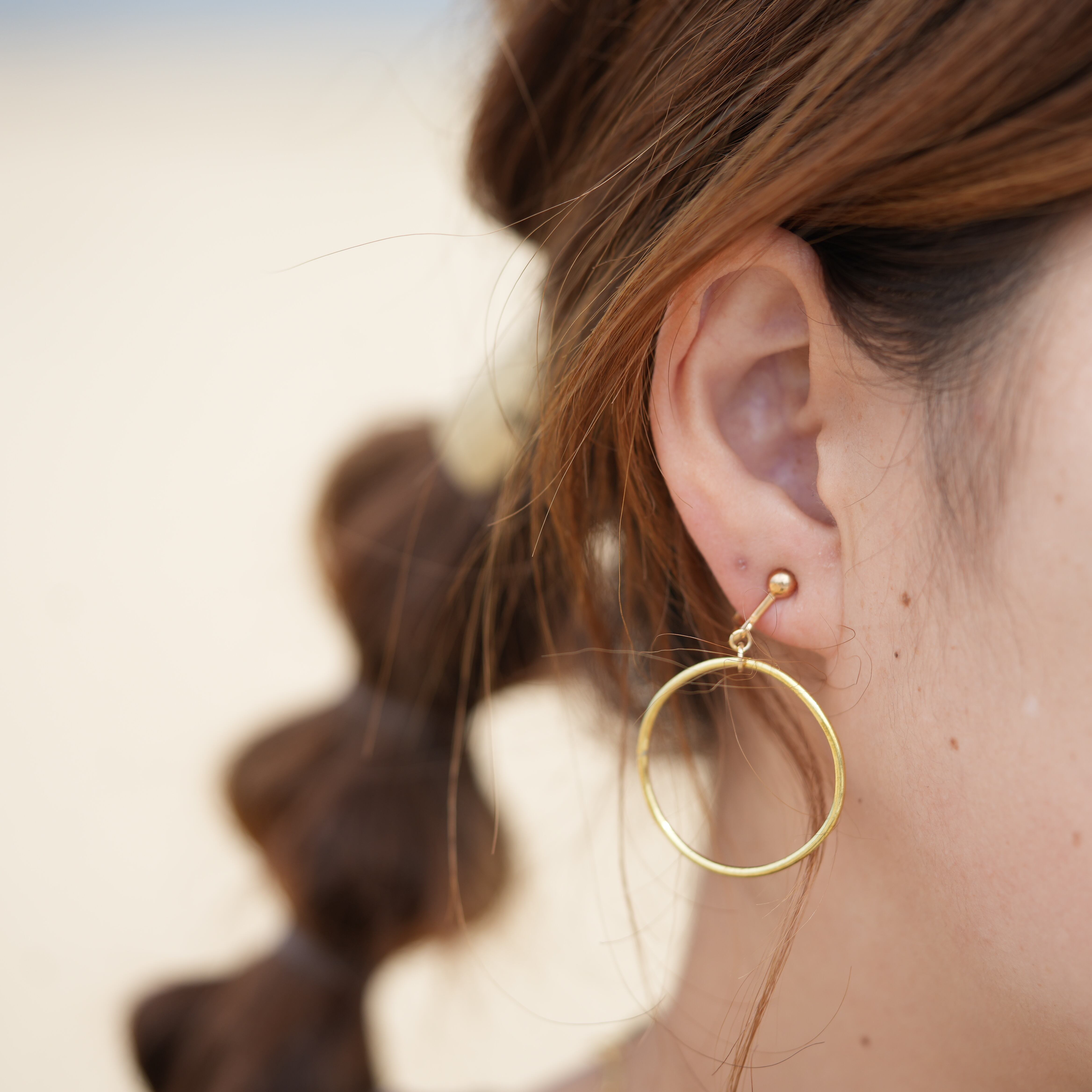 シンプルでありながら、個性的なデザインのシンプルフープ まる型真鍮ピアス・イヤリングです。まる型のホープが、顔周りを華やかに彩ってくれます。