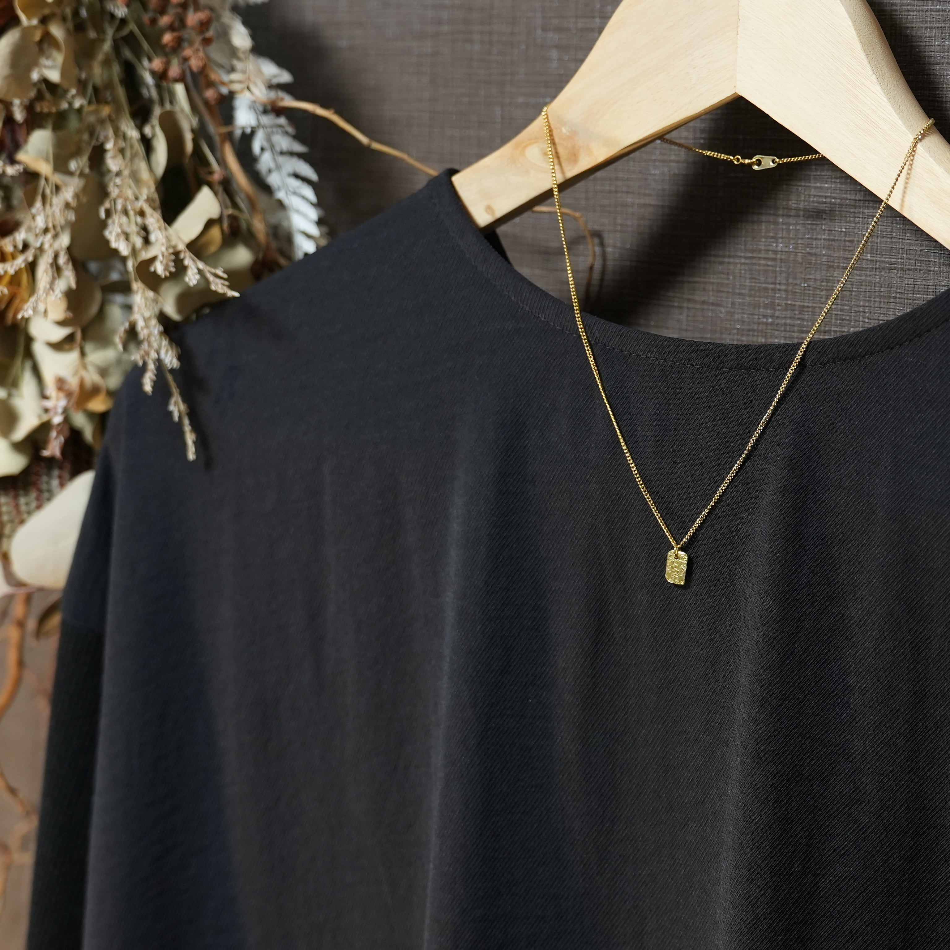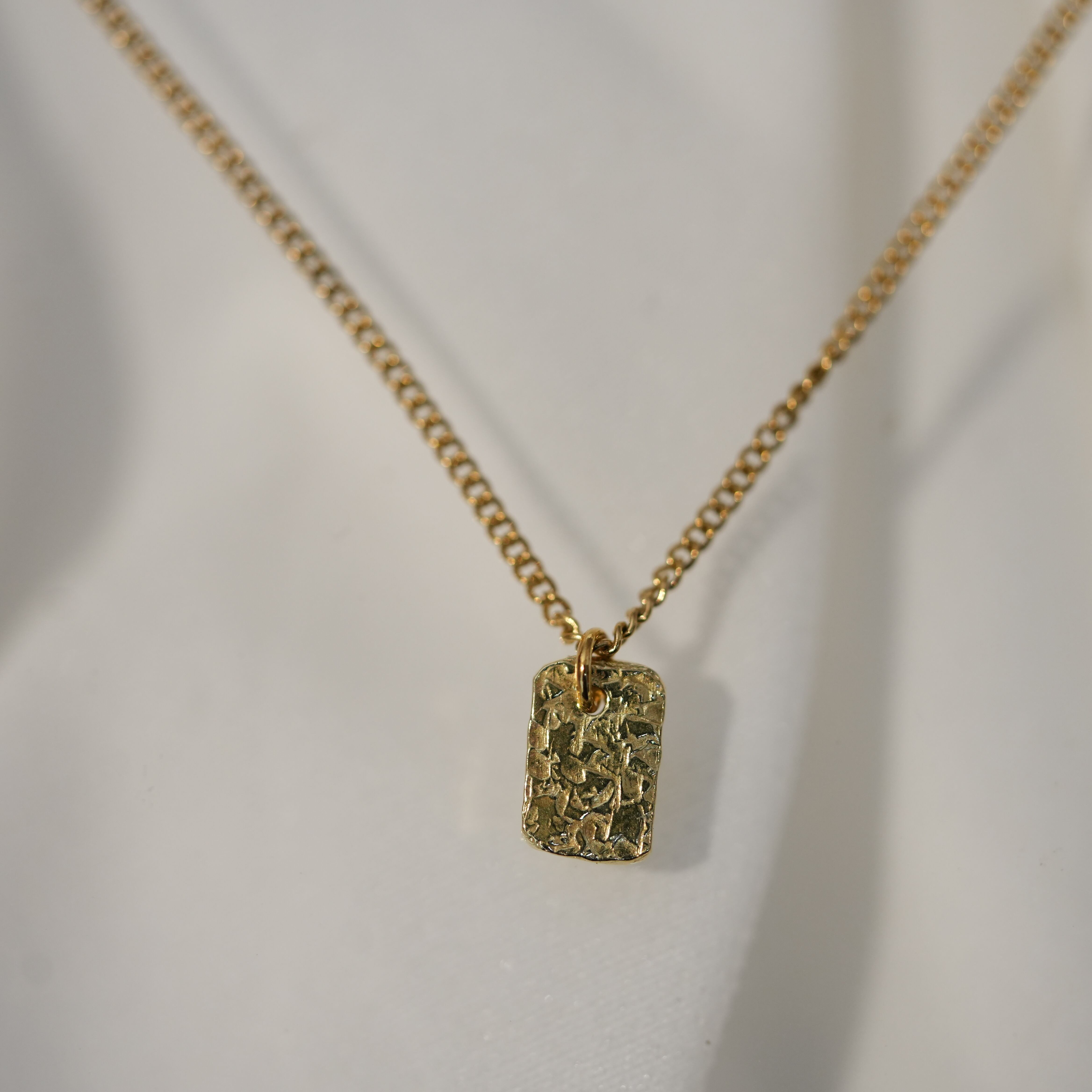 スクエア テクスチャー模様ネックレス商品となります。シンプルながらも存在感のあるデザインで、どんなスタイルにも合わせやすいアイテムです。真鍮製で作られており、耐久性も抜群。長さも選べるので、お好みのチェーン長さでお楽しみいただけます。